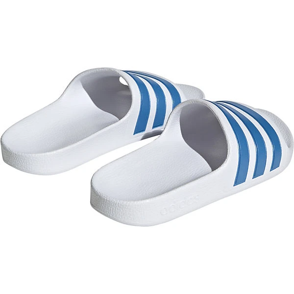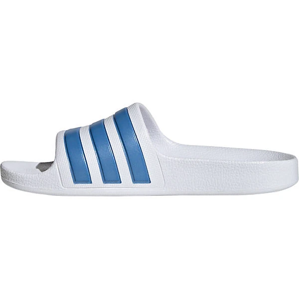 Ideal im Freibad oder am See sind die Badelatschen von adidas. In die Schuhe kann bequem hineingeschlüpft werden. Das ansprechend gestaltete Synthetik-Obermaterial ergänzt das Design dieses Paares.
