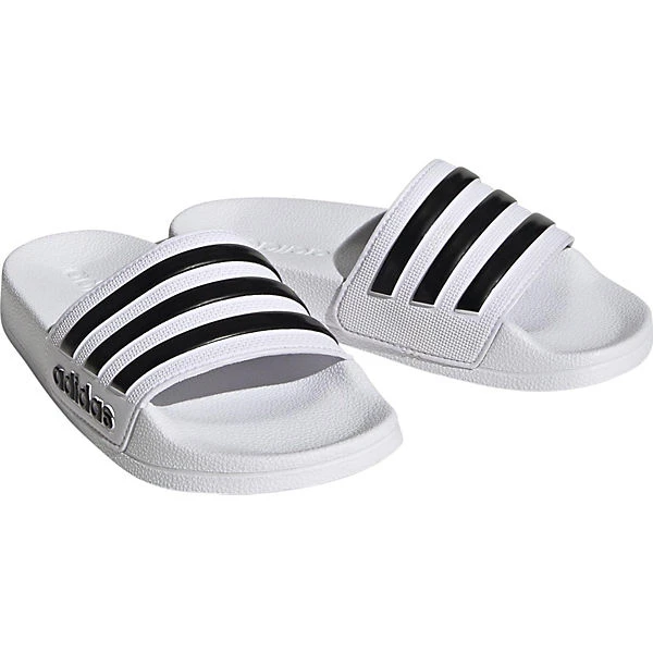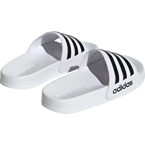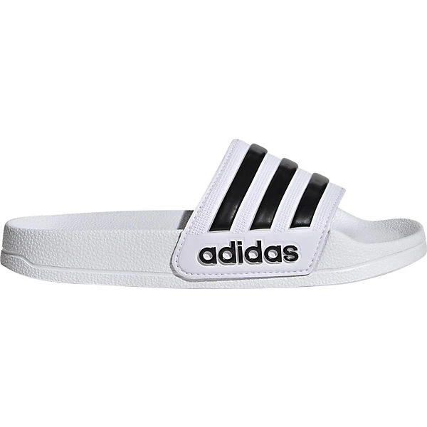 Sehr praktisch im Freibad und am Strand sind diese Badelatschen der Marke adidas. Das ansprechend gestaltete Synthetik-Obermaterial unterstreicht die Aufmachung des Paares. Das Schuhpaar kommt ohne jeglichen Verschluss aus, sodass ganz einfach hineingeschlüpft werden kann.