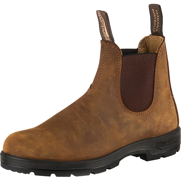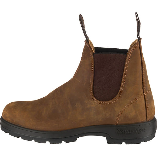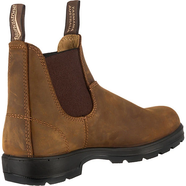 Die ledernen Chelsea Boots von Blundstone präsentieren sich im modischen Vintage-Look und mit farblich abgesetztem, elastischem Einsatz am seitlichen Schaft. Die charakteristischen Schlaufen im Bereich der Einstiegskante verleihen den Boots eine lässige Note.