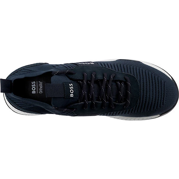 Auf Schritt und Tritt: Die Low Sneakers aus dem Hause BOSS dürfen zu keiner Gelegenheit fehlen. Dank der besonders guten Anpassungsfähigkeit des textilen Polyester-Futters begeistert dieser Schuh mit einem angenehmen Komfort beim Tragen. Der Schnürverschluss ermöglicht eine maximale Anpassung an Ihren Fuß und einen festen Sitz. Das textile Obermaterial ist anpassungsfähig und hat ein geringes Gewicht.