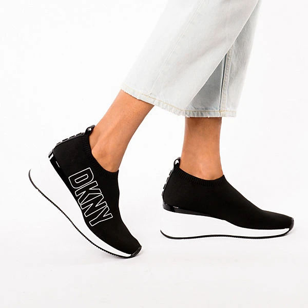 Auf Schritt und Tritt: Die Slip-On-Sneaker der Marke DKNY begleiten Sie perfekt durch den Tag. Das textile Obermaterial ist anpassungsfähig und hat ein geringes Gewicht. Es handelt sich um ein Modell zum einfachen und schnellen Hineinschlüpfen. Der auffällige Keilabsatz ist ein Blickfang durch die eindrucksvolle Höhe.