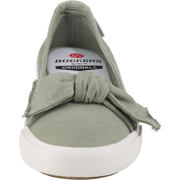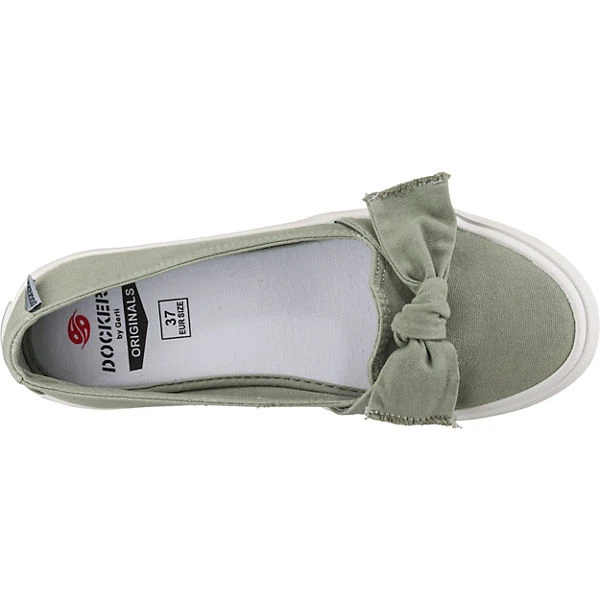 – sommerliche Ballerina von Dockers für Damen – Obermaterial aus Leinen in Khaki – weich gepolsterte Innensohle – rutschhemmende Laufsohle