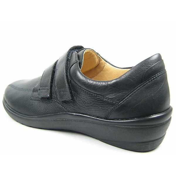 Damen Slipper von Ganter aus einem feinen hochwertigem Glattleder. Innen ist der Schuh mit einem cromfrei gegerbtem Leder ausgestattet. Der Schuh hat eine normale Weite. Der Keilabsatz hat eine Höhe von cirka 2 cm. Die Laufsohle ist aus Gummi. Der Klettverschluss zum einfachen und bequemen an- und ausziehen sorgt für einen guten Halt.Ebenfalls ist eine stufenlose Anpassung an den Fuß möglich. Die Schuhgröße fällt regulär aus.
