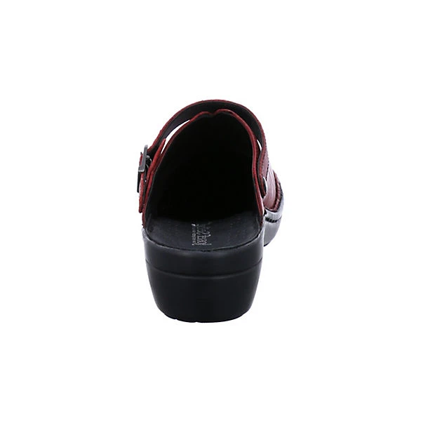 Bequeme Damen-Clogs aus glattem Leder. Die feine Schnalle setzt einen modischen Akzent und rundet das sonst schlichte Design des Schuhs ab. Die rutschfeste Profilsohle schafft einen sicheren Halt.