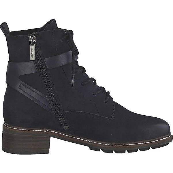 Die Schnürstiefeletten aus dem Hause Tamaris sorgen stets für einen perfekten Style. Die Schuhe sind mit einem Reißverschluss versehen. Der Blockabsatz in moderater Höhe bietet ein angenehmes Tragegefühl und einen ansprechenden Look.