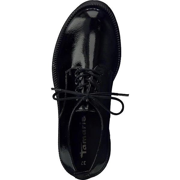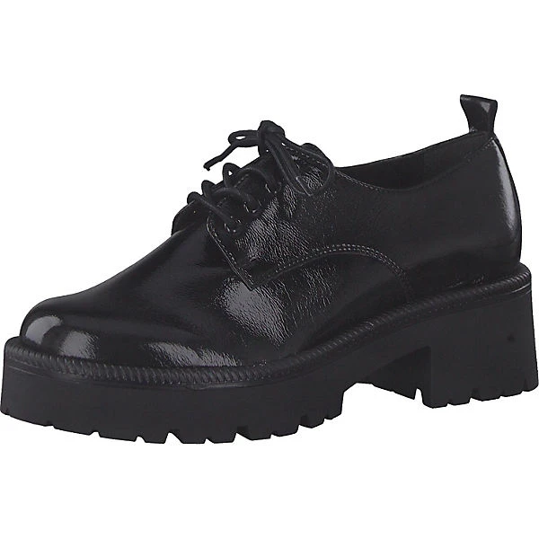 Der Obermaterial aus Lackleder- Imitat ist besonders strapazierfähig und sorgt zudem für höchsten Tragekomfort. Die gepolsterte Einlegesohle sorgt für ein tolles Laufgefühl und mit der gummierten Außensohle hast du jederzeit guten Halt. Durch die leichte Plateausohle und dem Blockabsatz ist der Schnürschuh ein echter Hingucker.