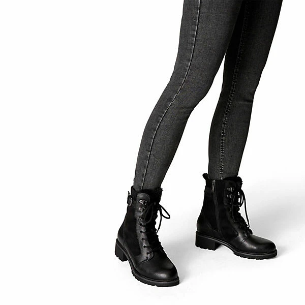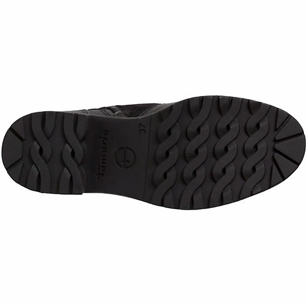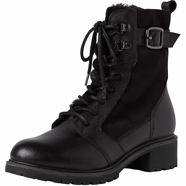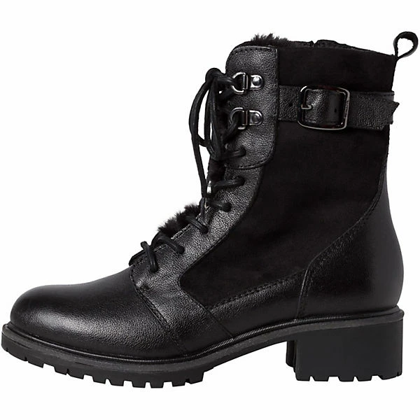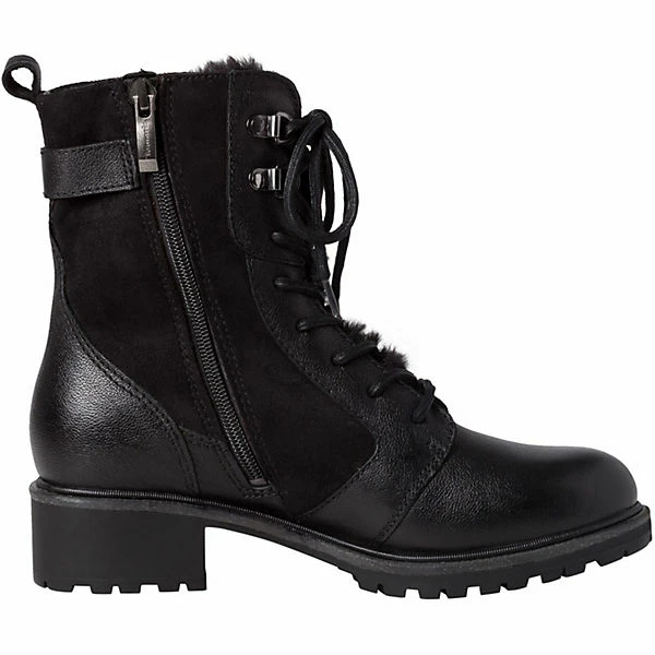 Der Winterboot der Marke Tamaris zeichnet sich durch das nachhaltige Leder-Obermaterial aus. Der 40 mm hohe Blockabsatz in Kombination mit der runden Schuhspitze lässt ihren Fuß grazil und feminin wirken.